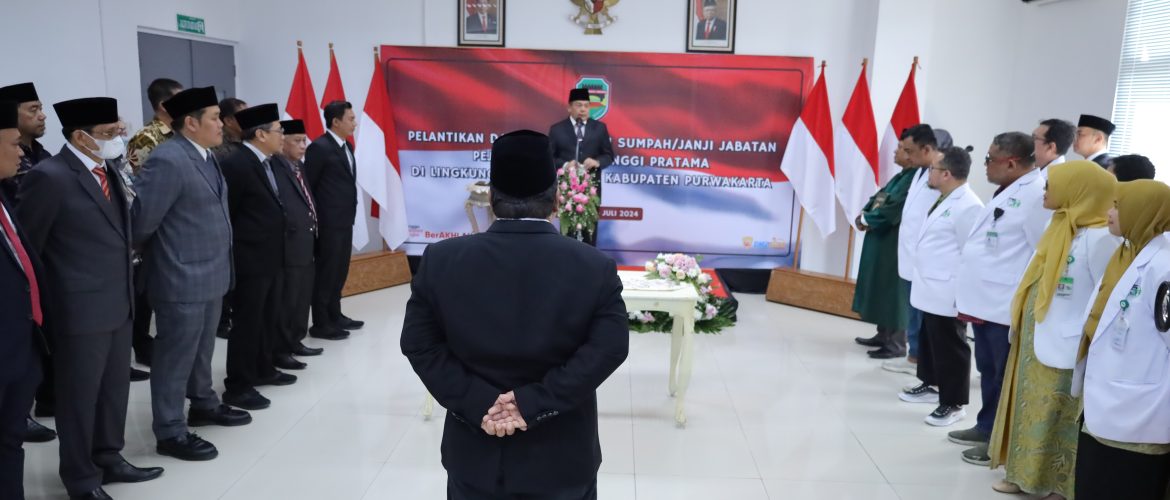 Pj. Bupati Purwakarta Benni Irwan, melantik dan mengambil sumpah/janji jabatan, Pejabat Pimpinan Tinggi Pratama Di LIngkungan Pemerintah Kabupaten Purwakarta, dr. Tri Muhammad Hani, MARS., MH.Kes sebagai Direktur RSUD Bayu Asih Kabupaten Purwakarta, Jumat, 26 Juli 2024. Semoga amanah baru ini berdampak pada peningkatan pelayanan RSUD Bayu Asih ke depannya.Turut hadir, Sekretaris Daerah Bapak Norman Nugraha, unsur Forkopimda dan para Camat Se-Kabupaten Purwakarta, para dokter, perawat, dan tenaga kesehatan lainnya serta jajaran struktural RSUD Bayu Asih.
