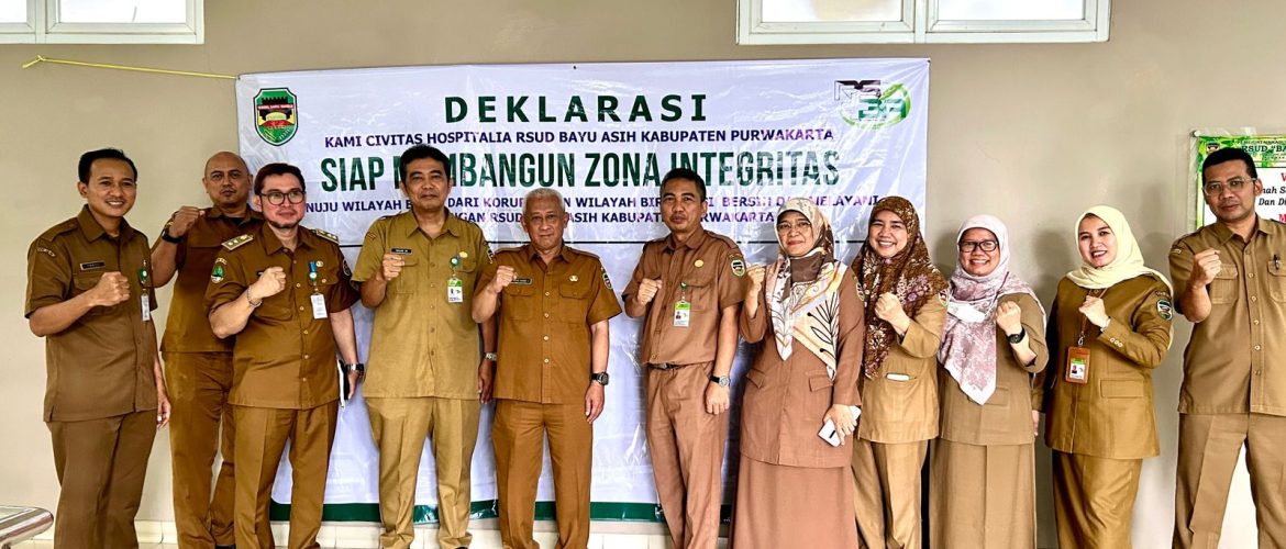 RSUD Bayu Asih siap dalam menuju Wilayah Bebas Korupsi (WBK) dan Wilayah Birokrasi Bersih dan Melayani (WBBM), dengan dilakukannya penandatanganan Deklarasi. Sejumlah pejabat struktural membubuhi tandan tangan pada kolom banner yang sudah disiapkan dilanjutkan oleh para staff pelaksana. Penandatanganan deklarasi adalah bentuk pencangan bahwa RSUD Bayu Asih sebagai unit kerja Zona Integritas berdasarkan Keputusan Bupati Purwakarta nomor : 700/Kep.110-Inspektorat/2023 tentang Penetapan Unit Kerja Zona Integritas Munju Wilayah Bebas Korupsi (WBK) dan Wilayah Birokrasi Bersih dan Melayani (WBBM) di Lingkungan Pemerintah Kabupaten